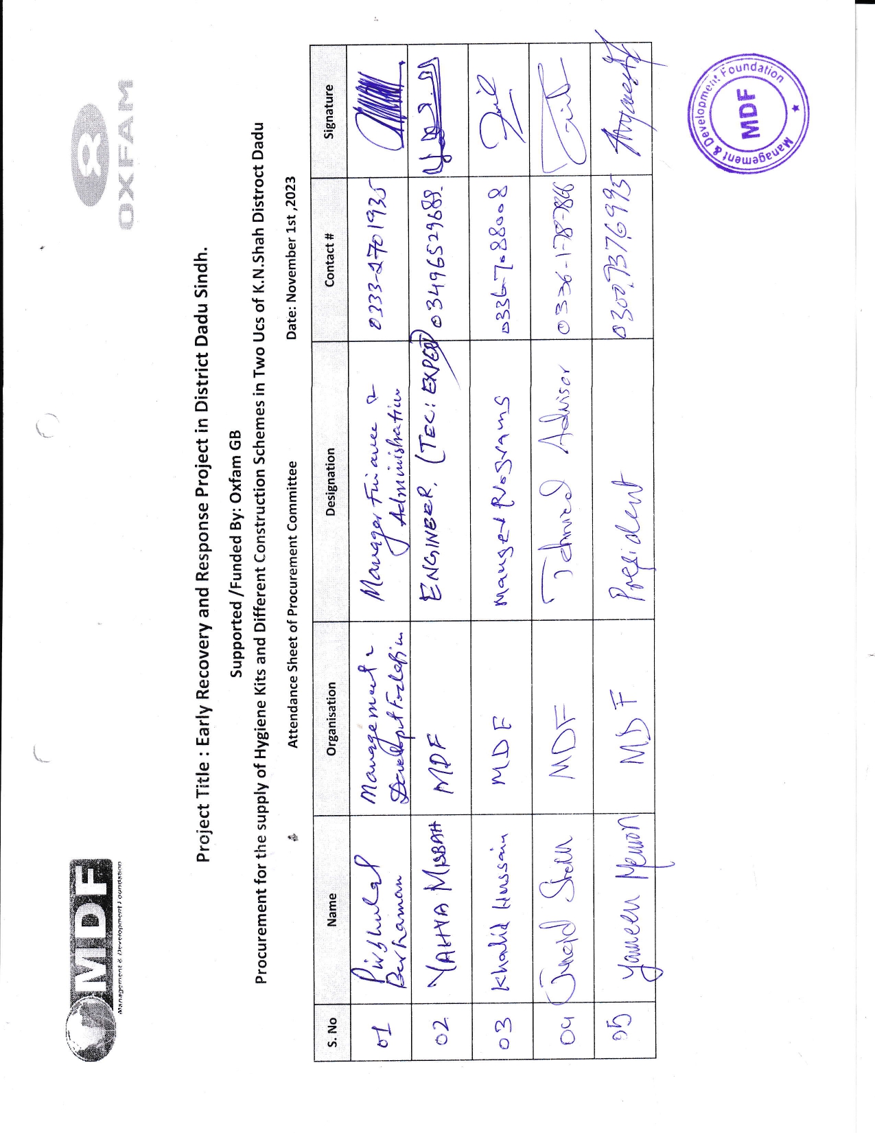 Attendance Sheet of Procurement Committee and Bidders or their representatives